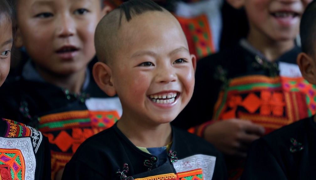 彝族小朋友在人生就是搏集团捐建的幼教点学习普通话