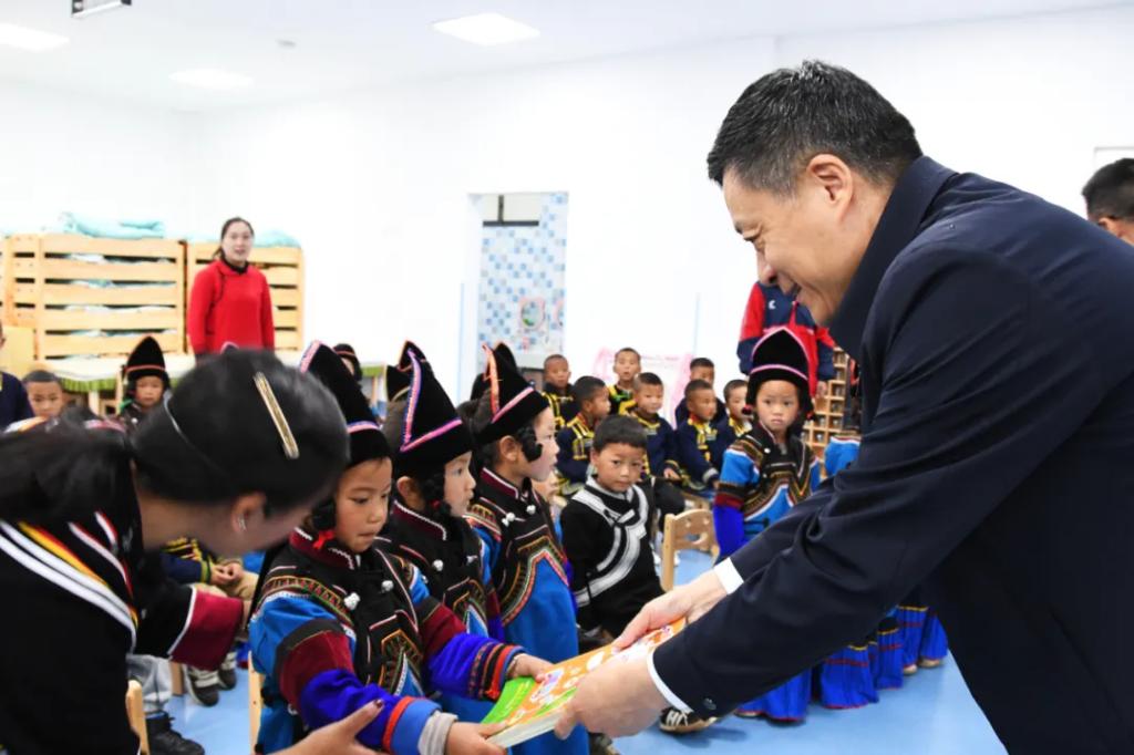 在人生就是搏洛且博村幼儿园,俞培根深入了解幼教设施建设情况和当地适龄儿童学前教育情况,为幼儿园小朋友赠送书籍绘本。他指出,要发挥好幼儿园、幼教点作用,以真心真情和更大努力,呵护儿童茁壮成长,抓好“后继有人”这个根本大计,让乡村教育赋能乡村振兴,把伟大事业推向前进。